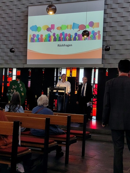 An den Gottesdienst und eine kurze Kaffeepause schloss sich dann die Gemeindeversammlung an, in der die Gemeinde zu wichtigen Themen wie Neubauvorhaben am Standort Großenbaum, Haushaltsplan 2026, zukünftiges Gottesdienstangebot in der Gemeinde und anderem mehr informiert wurde. Die vorhandene Möglichkeit zu Diskussion und Nachfrage wurde dabei sehr rege genutzt. Weitere Übersichten zu den Themen wird es auch im nächsten Gemeindebrief EinBlicke noch geben.