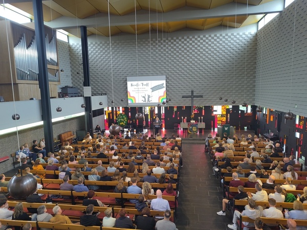 Gut gefüllt war die Großenbaumer Versöhnungskirche am 21. September beim Gottesdienst "Konfi total", den die seit dem vergangenen Jahr bestehende Konfirmandengruppe zur Begrüßung der neu startenden Konfis gemeinsam mit Jugendpastorin Ulrike Kobbe und VIkarin Lea Brischke vorbereitet hatten. Musikalisch gestaltet wurde der Gottesdienst von Kantorin Annette Erdmann und einer Projektband.