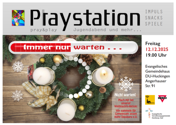 Freitag, dem 12. Dezember ab 19.00 Uhr im Ev. Gemeindehaus an der Angerhauser Straße in Huckingen.
