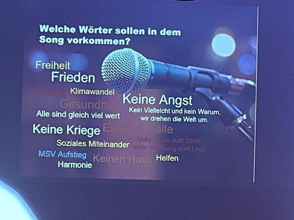 Als nächstes wurden Lieder, die Jugendliche eingeschickt hatten, zusammengeschnitten und abgespielt.