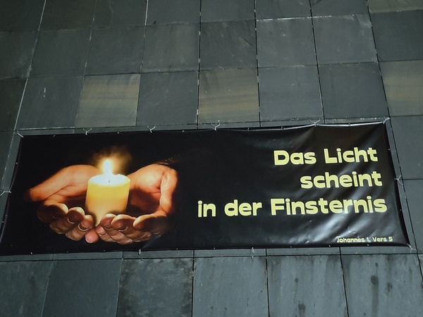 2020 zu Coronazeiten, als gar nichts mehr ging, haben wir das Banner zum ersten Mal an der Versöhnungskirche aufgehängt.