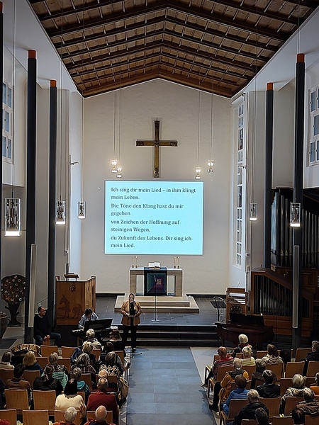 Ob gerade im Ruhestand, schon lange im Rentnerleben, fast im Ruhestand oder einfach aus Neugierde - zahlreiche Besucherinnen und Besucher waren der Einladung von Vikarin Lea Brischke und ihrem Team zum Gottesdienst rund um das Thema Ruhestand in die Auferstehungskirche nach Ungelsheim gefolgt. Es ging um die Herausforderungen, um das, worauf man sich freuen kann, um Fragen, Sorgen und Erfahrungen - und darum, dass auch in diesem Lebensabschnitt alles unter Gottes Segen stehen darf. Verschiedene Impulse, ein Markt der Möglichkeiten und viel Musik, die an zahlreichen Stellen im Gottesdienst zum Mitsingen einlud, sorgten für ein lebendiges Miteinander, das im Anschluss bei Getränken und leckerem Fingerfood gerne fortgesetzt wurde.