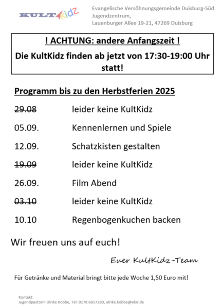 Weitere Informationen bei Jugendpastorin Ulrike Kobbe.