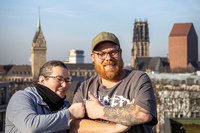 Christina Schubert vom Jugendreferat des Evangelischen Kirchenkreises Duisburg freut sich extrem, denn erstens ist die zweite Stelle in ihrem Arbeitsbereich seit Januar wieder besetzt, und zweitens mit Sebastian Wittke. Denn die Chemie zwischen den beiden stimmt. Sebastian Wittke übernimmt die praktische Jugendarbeit und organisiert die Jugendgottesdienste „PottPraise“, Jugendleiterschulungen sowie Freizeiten und Ausflüge auf Kirchenkreisebene für Kinder und Jugendlichen aus den Gemeinden. Christina Schubert, die das verwaltende Backoffice verantwortet, kümmert sich um Arbeitsbereiche wie Verwaltung, Finanzen, politische Themen, Verbindung zu anderen Verbänden, Jugend und Politik. Sie versteht sich aber auch als „helfende Hand bei den praktischen Veranstaltungen“ im Jugendreferat. Sebastian Wittke ist auch deshalb froh, im Tandem mit seiner Kollegin arbeiten zu können, denn „klassische Jugendarbeit mit nur einem Hauptamtlichen fühlt sich oft einzelkämpferisch an“.