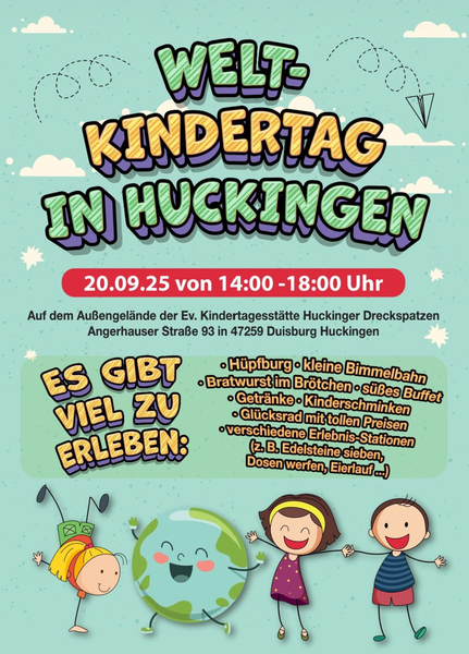 Der Gottesdienst für Familien findet in Kooperation mit den evangelischen Kitas Ungelsheim und Huckingen statt und wird musikalisch vom Kinderchor, geleitet von Lara Diener, gestaltet.