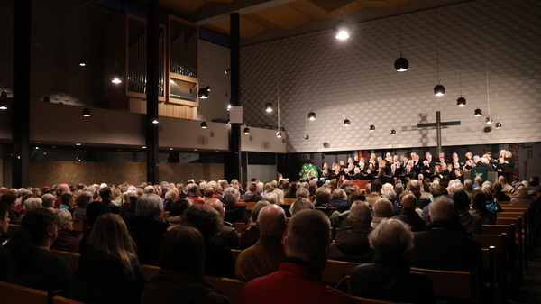 Mehr als 300 Besucherinnen und Besucher kamen am 16. November in die Versöhnungskirche nach Großenbaum, um das Konzert mit dem Titel "Klänge des Friedens" mitzuerleben. Die Kantorei unter der Leitung von Kantorin Annette Erdmann brachte ein abwechslungsreiches Programm mit Liedern von W. A. Mozart, Beethoven, Mendelssohn, John Rutter, Amy Beach u. a. zu Gehör. Auch ein Gebet nach einem ukrainischen Hymnus von Mykola Lysenko und das hebräische Friedenslied „Ose shalom“ standen auf dem Programm. Begleitet wurde die Kantorei von Hyekoung Kang am Klavier und Anja auf der Heiden an der Querflöte, für besondere klangliche Akzente sorgte die litauische Harfenistin Giedrė Šiaulytė. Beim abschließenden Kanon "Dona nobis pacem" war das Publikum zum Mitsingen eingeladen.