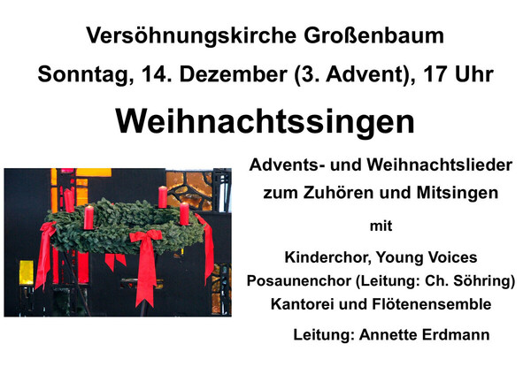 und Singen von Advents- und Weihnachtsliedern in die Versöhnungskirche Großenbaum, Lauenburger Allee 23 eingeladen.