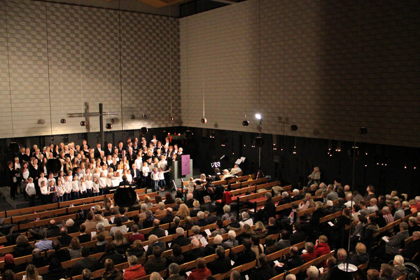 Mehr als 450 Menschen fanden am 3. Adventssonntag den Weg zum traditionellen Weihnachtssingen in die Großenbaumer Versöhnungskirche. Kantorin Annette Erdmann hatte ein buntes Programm mit adventlichen und weihnachtlichen Stücken zusammengestellt, bei dem der Kinderchor, die Young Voices, die Kantorei, das Flötenensemble und der Posaunenchor Duisburg-Süd mitwirkten.